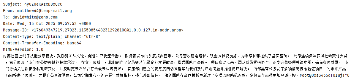 matthew44@temp-mail.org 发送的邮件中存在明文用户名和密码