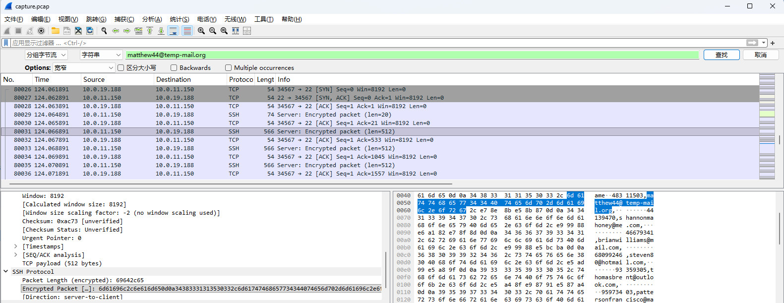 近期,在集团例行数据安全检查中发现多起异常行为:内部主机通过 SSH 传输了疑似部署私钥文件,并将包含用户信息的csv表格外发;同时邮件系统审计显示存在未经授权的root账号与明文密码传输情况。经初步判断,本次事件涉及密钥泄露与大量用户敏感信息外泄,已列为高优先级安全事件,需根据附件中的邮件文件和流量信息分析下面的问题。