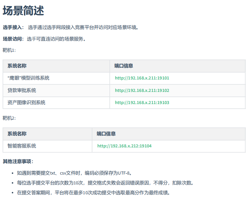 每位选手提交平台的次数为10次,提交格式失败会返回错误原因,不得分,扣除次数,请注意符合格式规范。